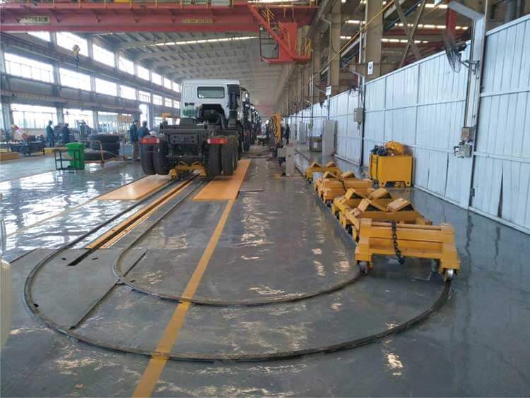 The line can be configured modularly according to trailer type, workshop space, and production capacity.